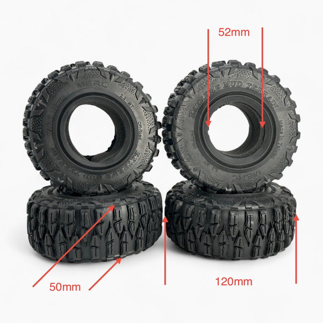 2.2 inch Rubber Tires 120mm for SCX10 D90 TRX4 KM2 1/10 Scale