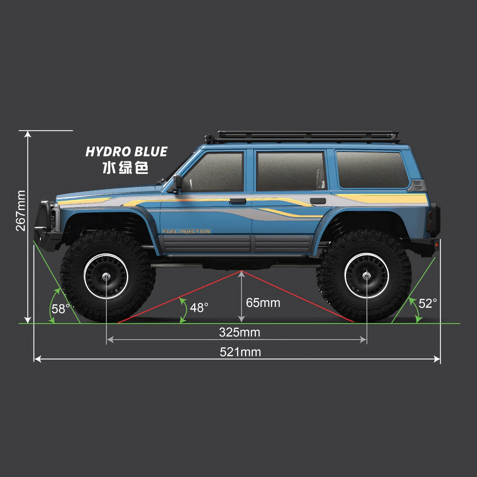 - Front and Rear Portal Axles: Provides an impressive 65mm of ground clearance, allowing you to easily clear rocks, roots, and other trail hazards.