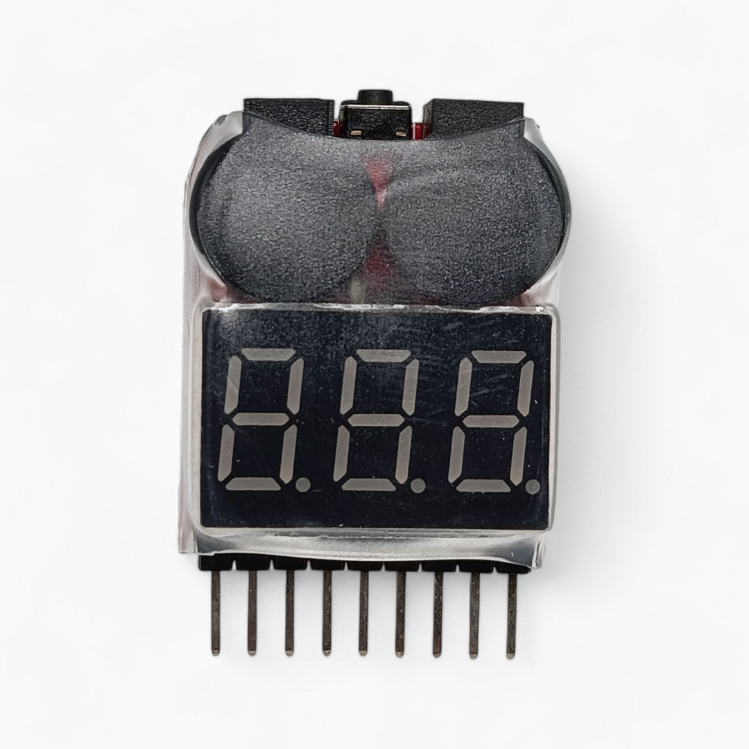 The LiPo Checker Low Voltage Tester Volt Meter Monitor is an essential tool for monitoring and protecting your LiPo batteries. Designed for use with 1-8S LiPo, Li-ion, LiMn, and LiFe batteries, this compact device helps prevent over-discharge by providing real-time voltage readings and sounding a buzzer alarm when low voltage levels are detected. The voltage detection is highly accurate, with precision down to 0.01V. It displays both individual cell voltages and total pack voltage, making it an indispensable tool for remote control toys and RC enthusiasts. The built-in buzzer ensures you never miss a critical low-voltage warning, safeguarding your battery’s lifespan.